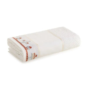 Além do barrado desenhado, ele tem uma barra com 9 cm ideal para pintura, patch aplique, bordado em máquina e ponto cheio.